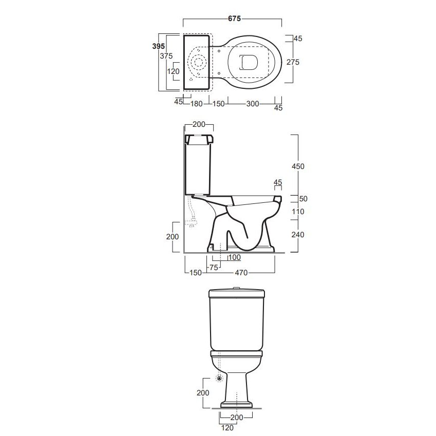 El set incluye: LO921 - inodoro monobloque con desagüe de suelo blanco Ficha técnica LO922 - cisterna con tapa para inodoro monobloque LO008 - tapa de madera color nogal relentizada y bisagras cromo D21 - batería de desagüe cromo