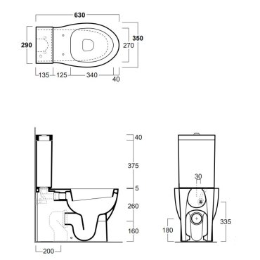 El set incluye: LFT25 - inodoro monobloque con desagüe a pared y al suelo mediante curva técnica incluida Ficha técnica LFT26 - cisterna con tapa LFT006 - asiento de inodoro termoestable blanco con bisagras cromadas relentizadas de desenganche rápido D22 - batería de desagüe cromada de doble flujo