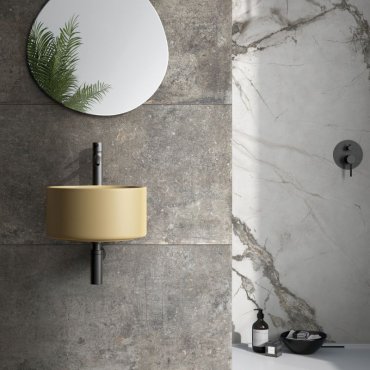 Progetto en gres porcelánicoefectopiedra se desarrolla con una superficie y agarrenaturales .