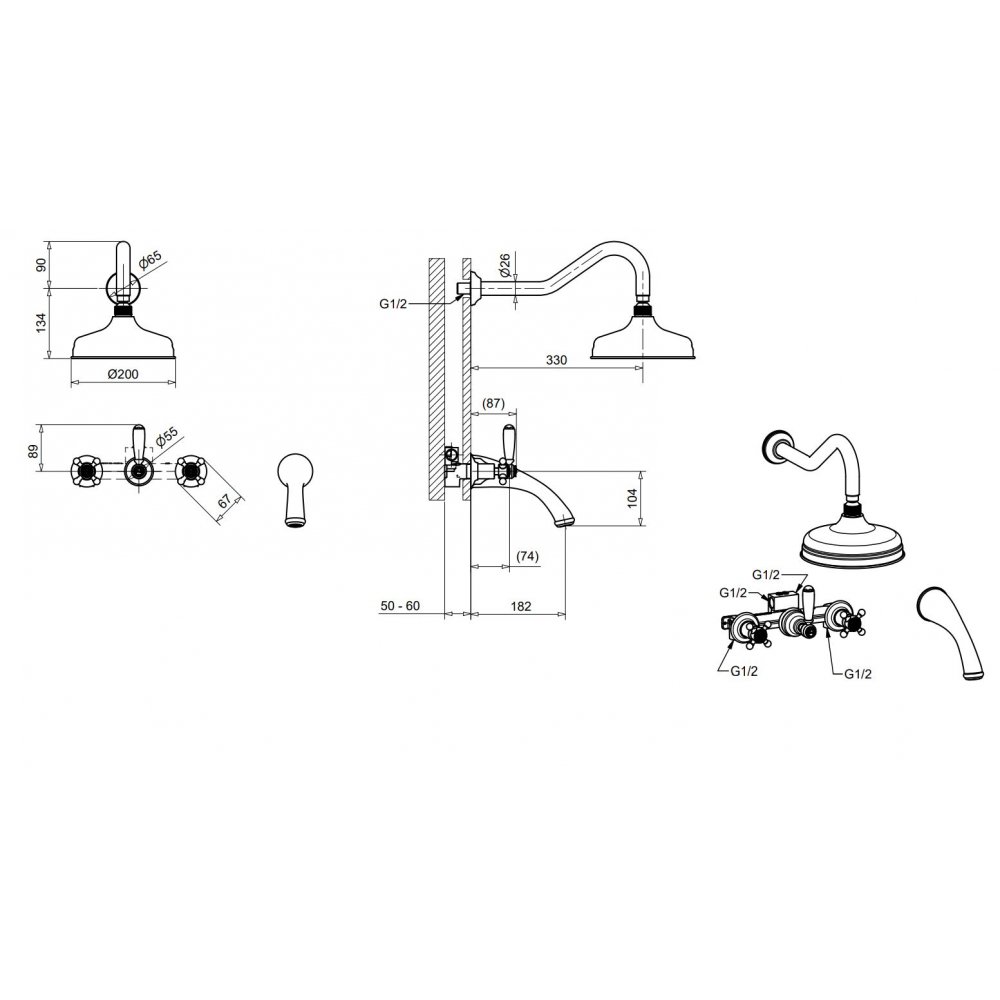 Juego de grupo de baño incorporado de baño clásico retro conjunto de grifo de parada cabezal de ducha caño de brazo 8328
