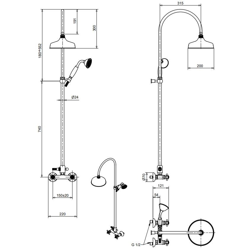 BUGNATESE ARCADIA COLUMNA CON DUCHA EXTERIOR Y KIT DÚPLEX CROMADO