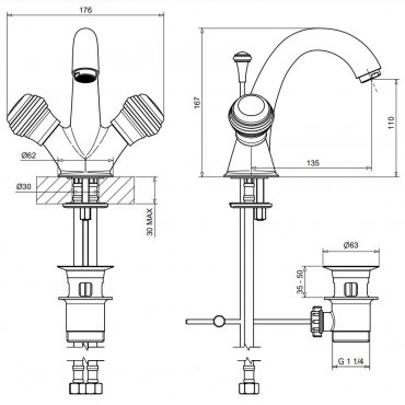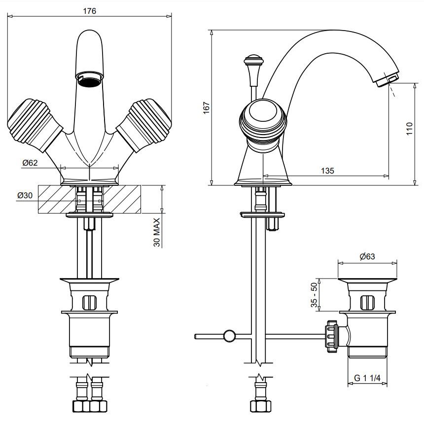 BUGNATESE AXO MEZCLADOR LAVABO DE 1 ORIFICIO CON DESAGÜE CROMADO