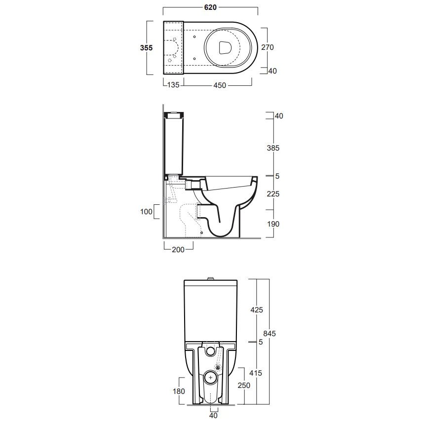 El set incluye: EL07 - inodoro monobloque con desagüe de pared o de suelo (curva técnica incluida) EL09 - cisterna con tapa para inodoro monobloque EL003 - tapa de inodoro termoestable blanca D22 - batería de desagüe cromada de doble flujo para cisterna monobloque