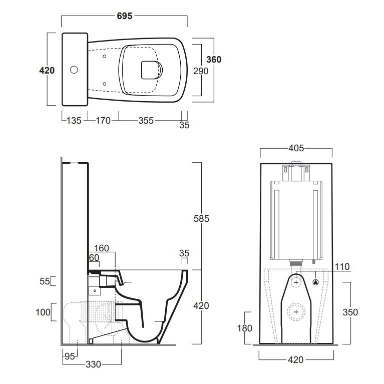 - Inodoro carenado BB01 “Rimless”. Desagüe de pared o piso. Completo con kit de fijación F 91. Ficha técnica
