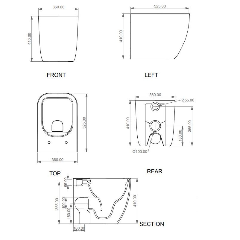 sanitarios baño moderno inodoro inodoro vater inodoro de pie a ras de pared a ras de pared desagüe de piso BRWC01001 BRWC01 001