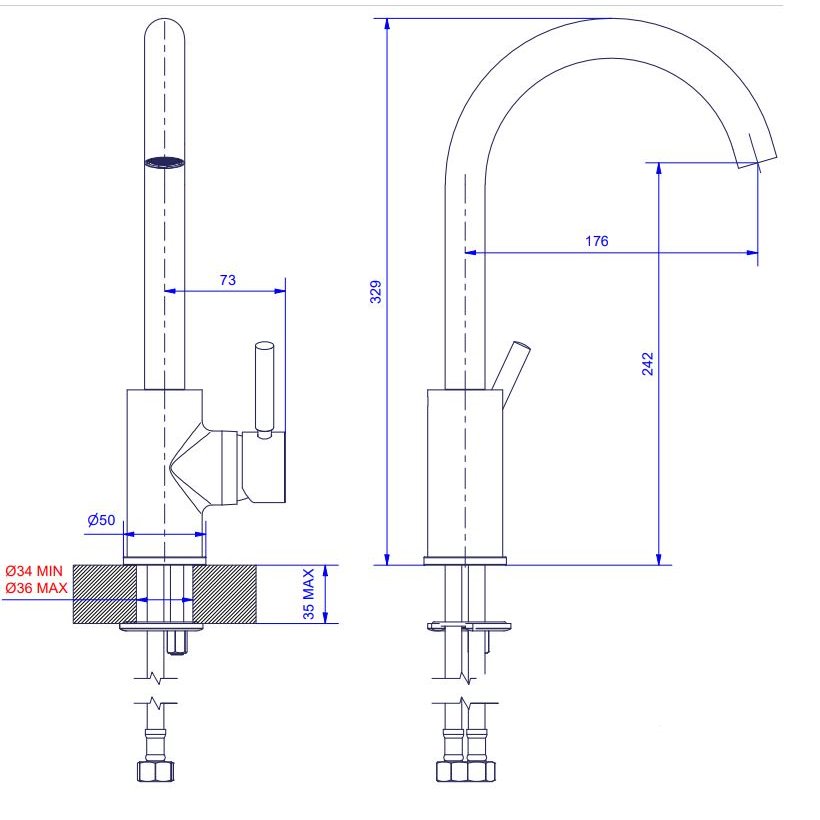 mezclador monomando de un orificio o fregadero de agua hogar cocina latón acabado cromado caño giratorio 2282