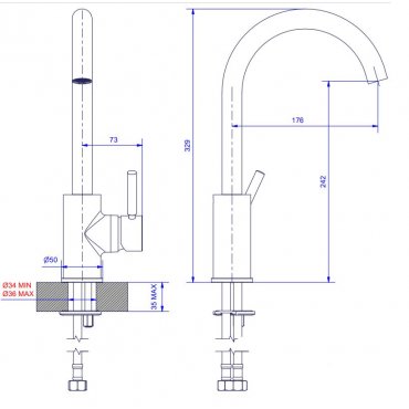 GABOLI FRATELLI PAPIRO MEZCLADOR PARA LAVABO CAÑO ALTO GIRATORIO Y DESAGÜE