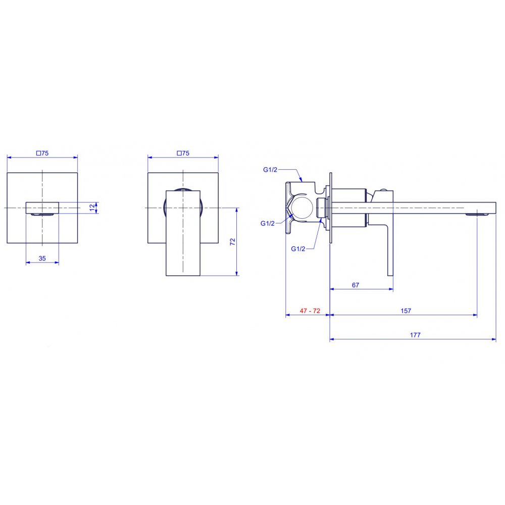 GABOLI FRATELLI KLIP MEZCLADOR LAVABO EMPOTRADO CON CAÑO DE PARED
