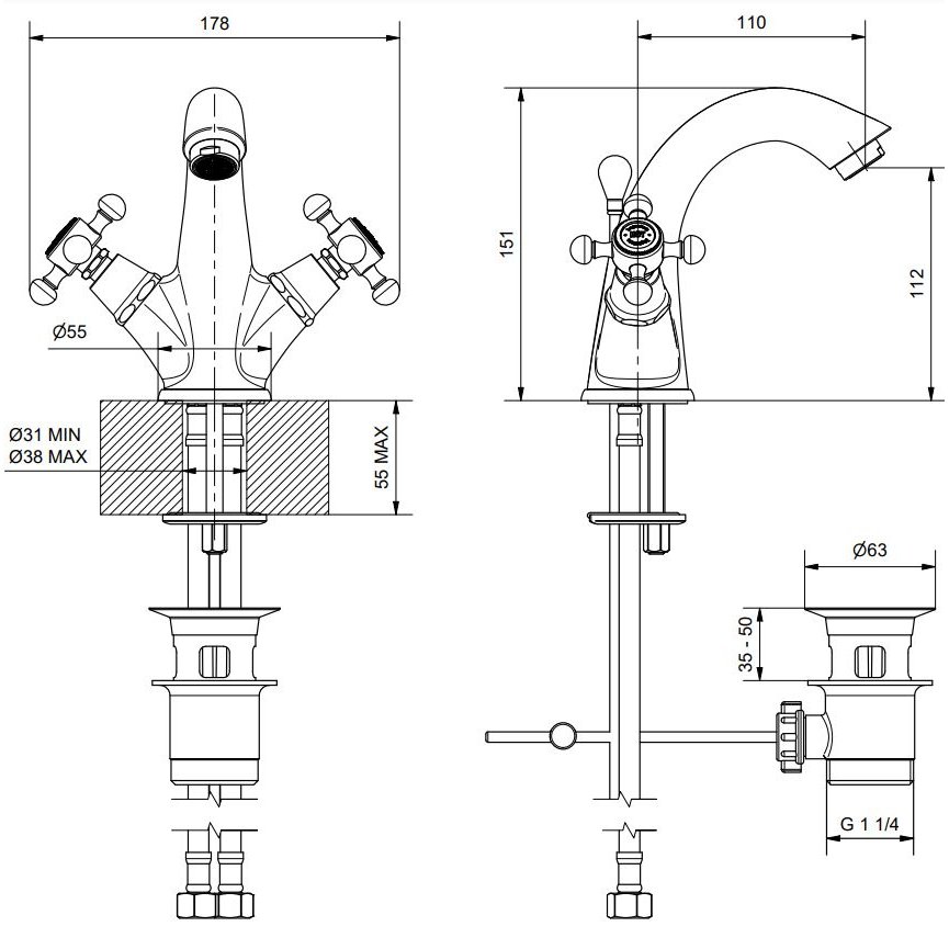 BUGNATESE LADY LAVABO DE 1 ORIFICIO CON DESAGÜE CROMADO