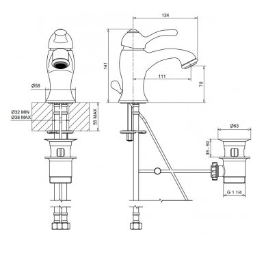 BUGNATESE LEM MEZCLADOR DE LAVABO CON DESAGÜE CROMADO