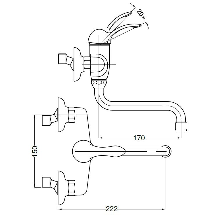 BUGNATESE LEM MEZCLADOR DE PARED PARA FREGADERO CON CAÑO GIRATORIO CROMADO