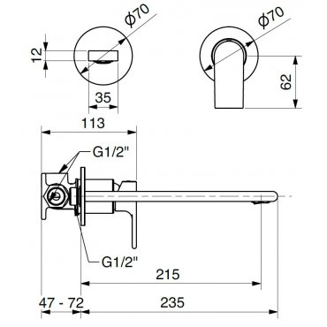 BUGNATESE SIMPLE MEZCLADOR DE PARED PARA LAVABO CON CLIC CLAC Y CAÑO 21 CM CROMO