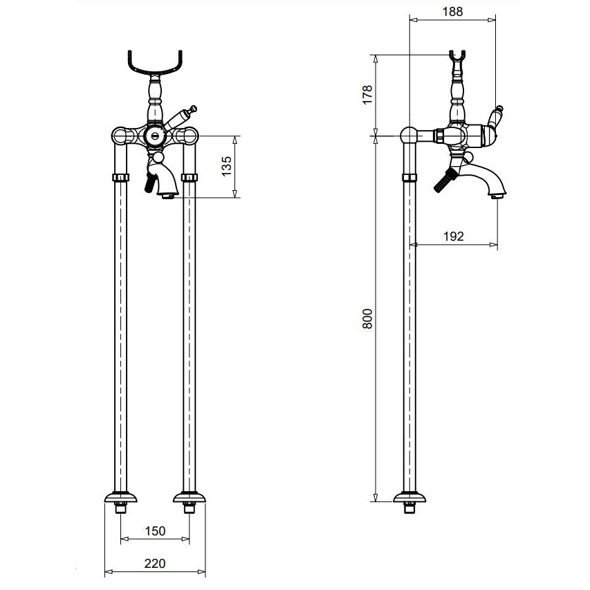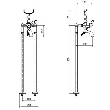 BUGNATESE OXFORD CONJUNTO PARA BAÑERA EXTERNO CON SOPORTE DE PIE CROMADO