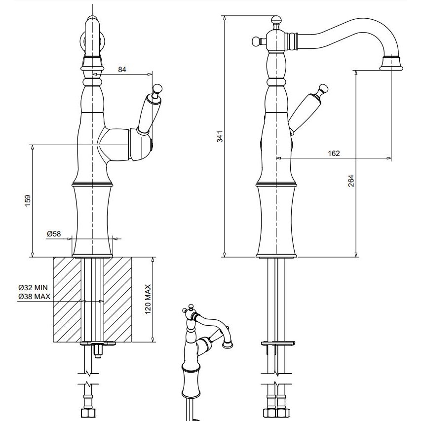 BUGNATESE OXFORD MEZCLADOR DE LAVABO MODELO ALTO CON DESAGÜE CROMADO