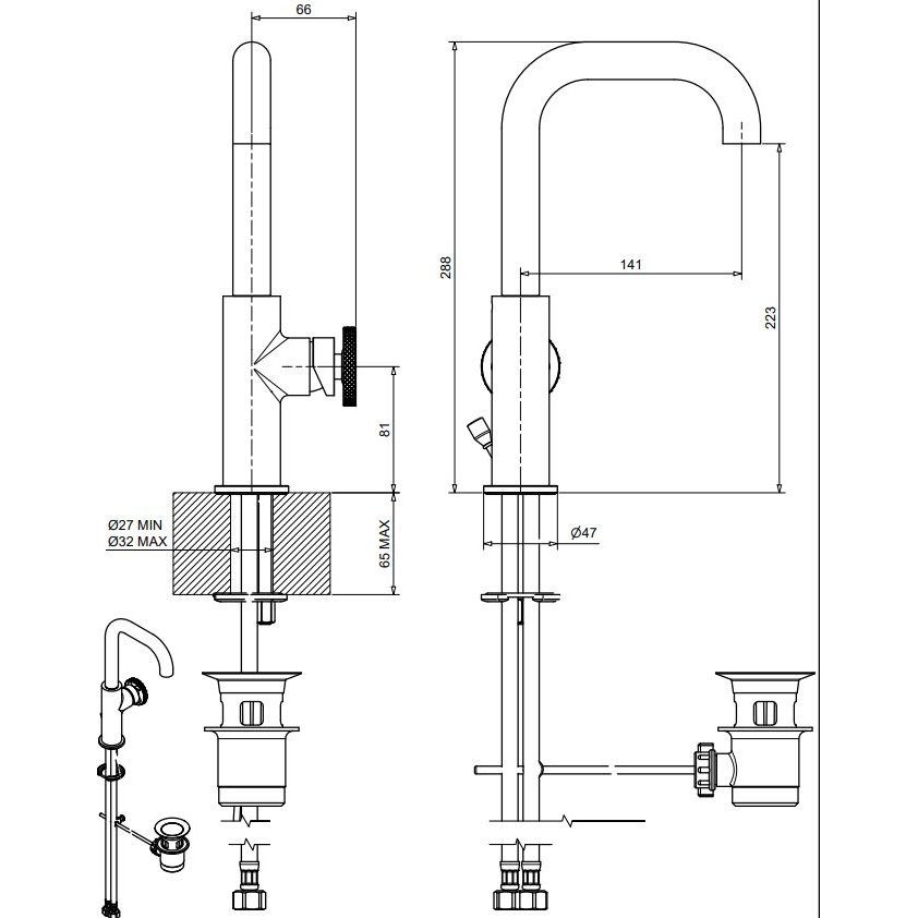 GABOLI FRATELLI KLIP CAÑO ALTO FIJO PARA LAVABO CON MEZCLADOR DE APOYO
