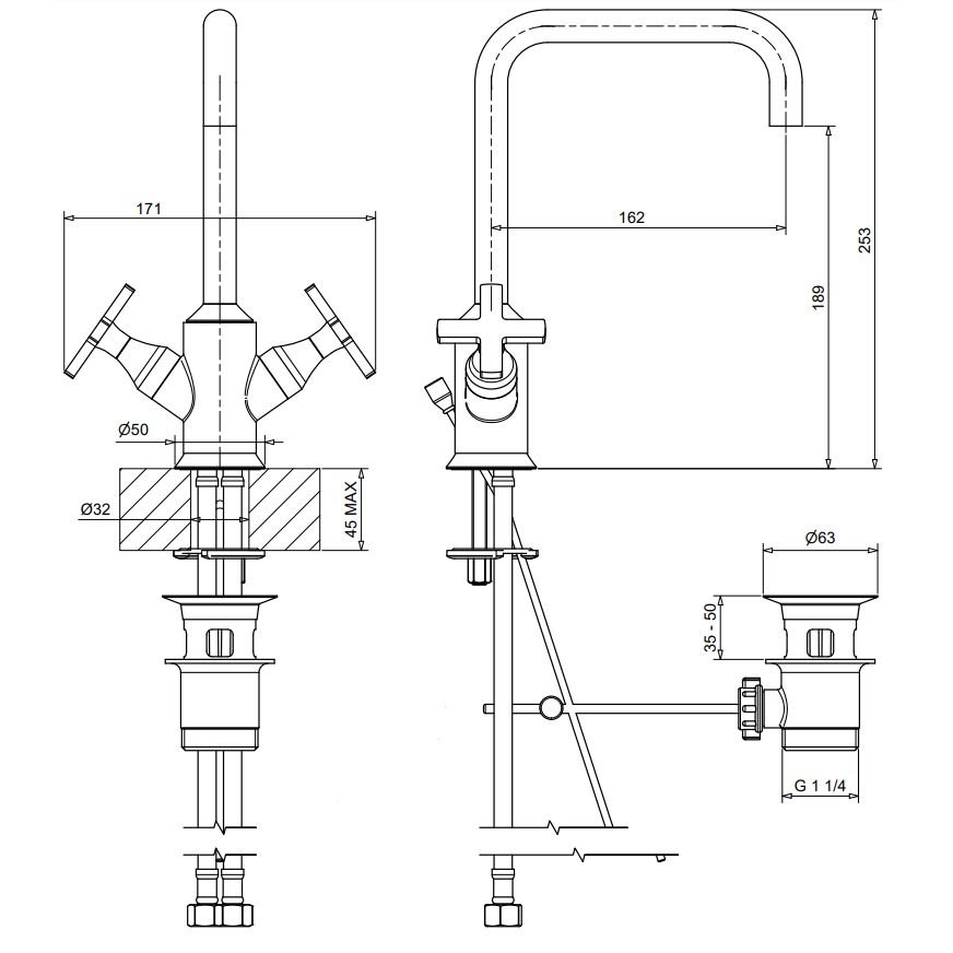 BUGNATESE ORION GRIFO DE 1 ORIFICIO PARA LAVABO CON DESAGÜE AUTOMÁTICO CROMADO