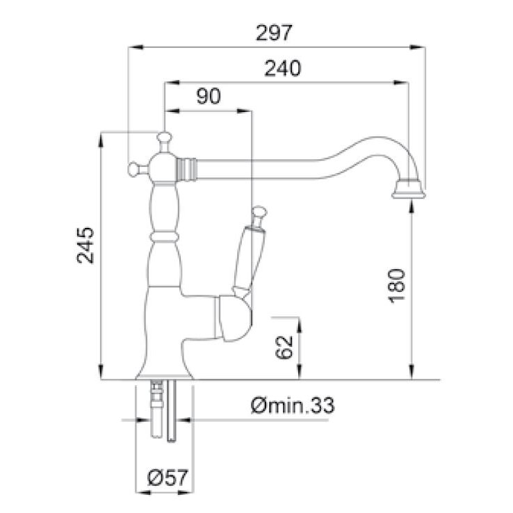 Mezclador monomando fregadero de un solo orificio fregadero de estilo antiguo fregadero caño abatible hogar cocina latón cromado acabado cromado 6382