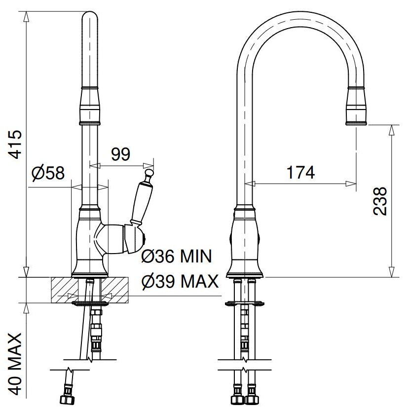 BUGNATESE RODOS MEZCLADOR LAVABO EXTENSIBLE CROMO SIN VÁLVULA DESAGÜE Y FLEXIBLE