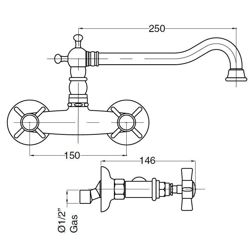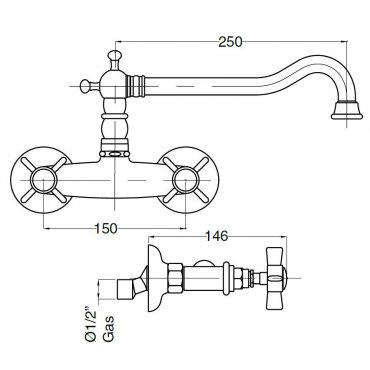 BUGNATESE PRINCETON CONJUNTO GRIFO FREGADERO DE PARED CON CAÑO GIRATORIO CROMADO
