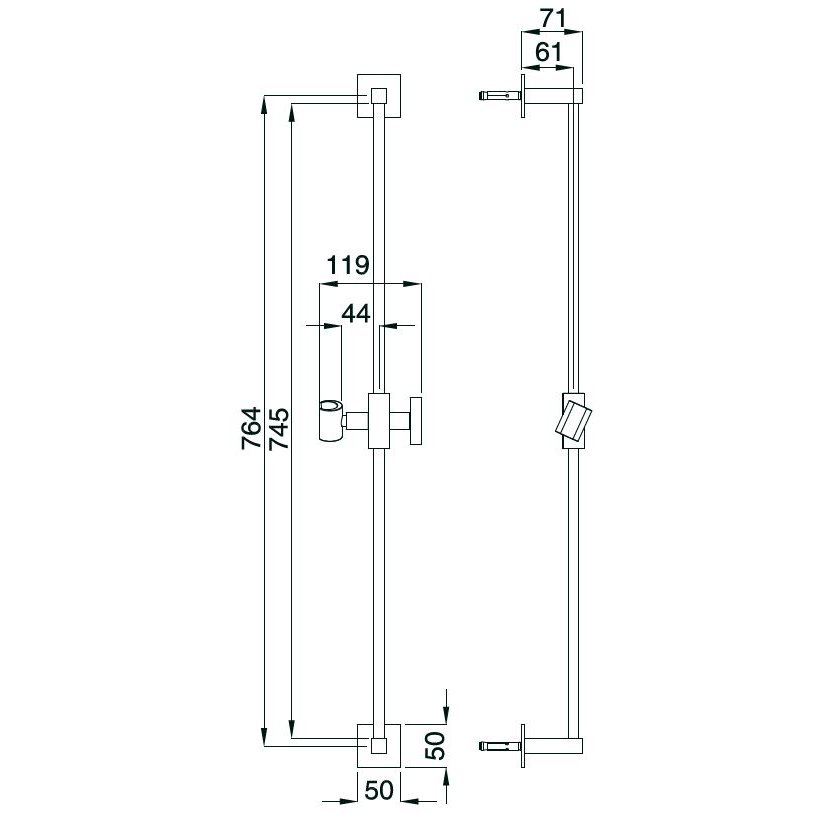 BUGNATESE WELLNESS BARRA DE DUCHA DESLIZANTE CUADRADA CROMADA