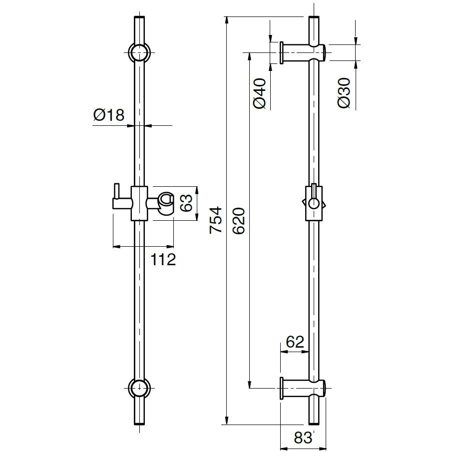 BUGNATESE WELLNESS BARRA DE DUCHA DESLIZANTE MINIMALISTA CROMADA