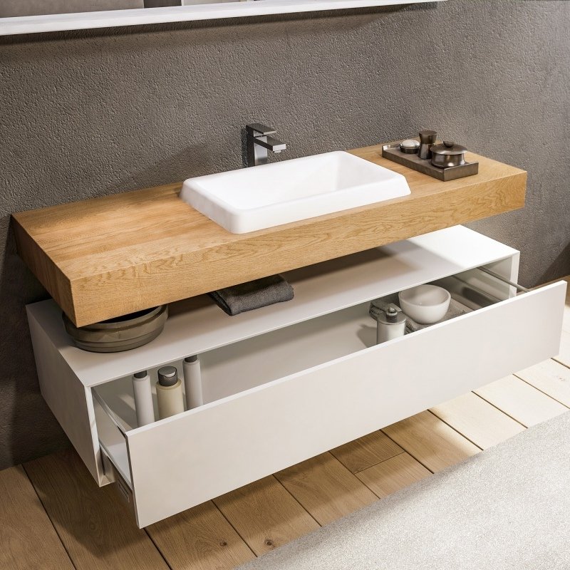 MENSOLONI BASE SUSPENDIDA CON CAJONERA LAVABO MUEBLE DE PARED ESPEJO