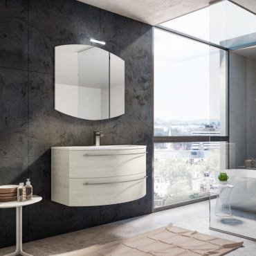 Architectural es una moderna colección de mobiliario de baño Mobilduenne con líneas geométricas y combinaciones de colores contrastados.