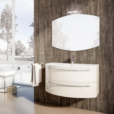 CORNICE 45° PORTALAVABO SUSPENDIDO CAJONERA LAVABO Y ESPEJO
