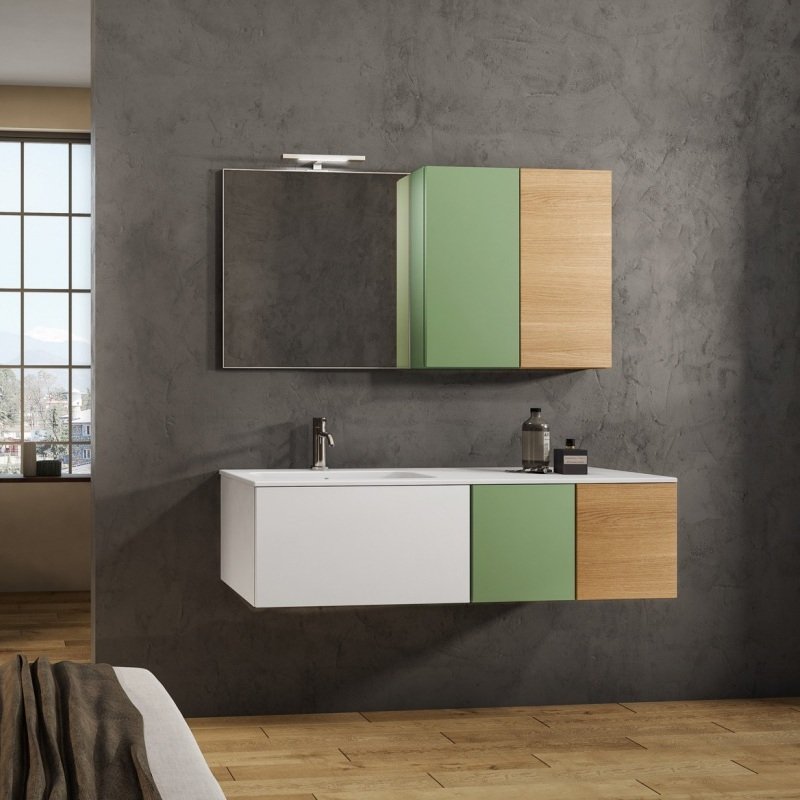 GOLA 2 PORTALAVABO SUSPENDIDO 1 CAJÓN CON MÓDULO DE PARED Y ESPEJO