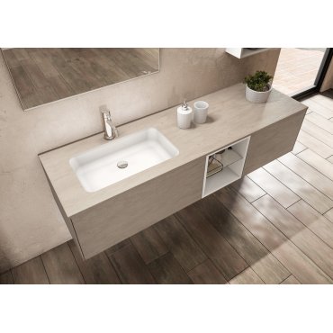 CORNICE 45° PORTALAVABO SUSPENDIDO 2 CAJONES MUEBLE PARED Y ESPEJO