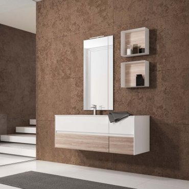 MUEBLE DE PARED 2 CAJONES DE 90CM CON LAVABO, ESPEJO Y COLUMNA - VE01