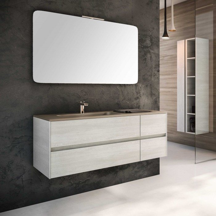 MONOBLOCCHI PORTALAVABO SUSPENDIDO 2 CAJONES MÓDULO PARED Y ESPEJO
