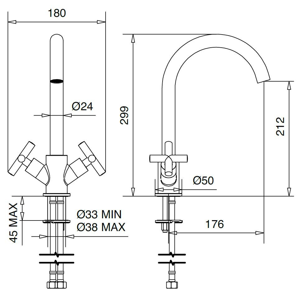 NEWFORM X-STEEL 316 MEZCLADOR DE LAVABO SIN DESAGÜE CROMO