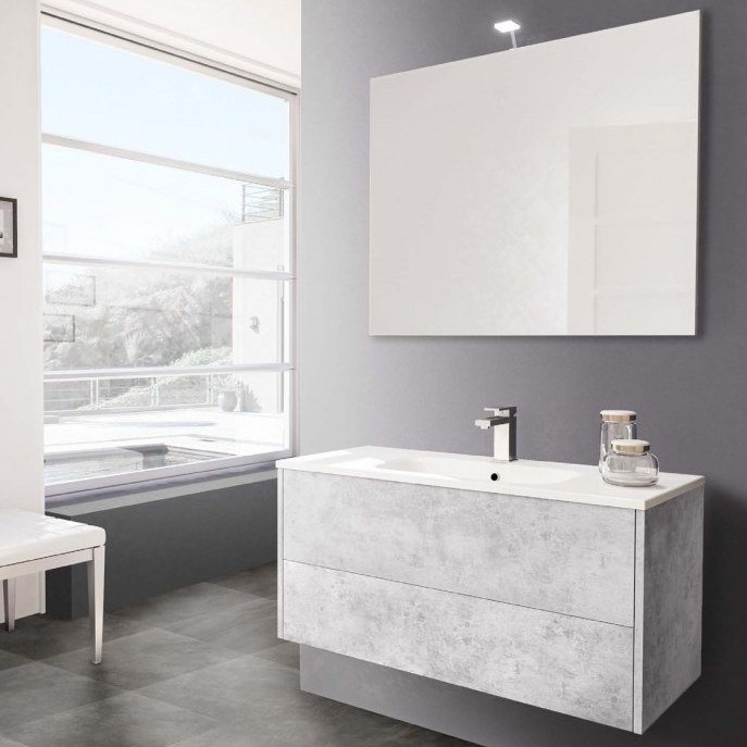 MONOBLOCCHI PORTALAVABO SUSPENDIDO 2 CAJONES MÓDULO PARED Y ESPEJO