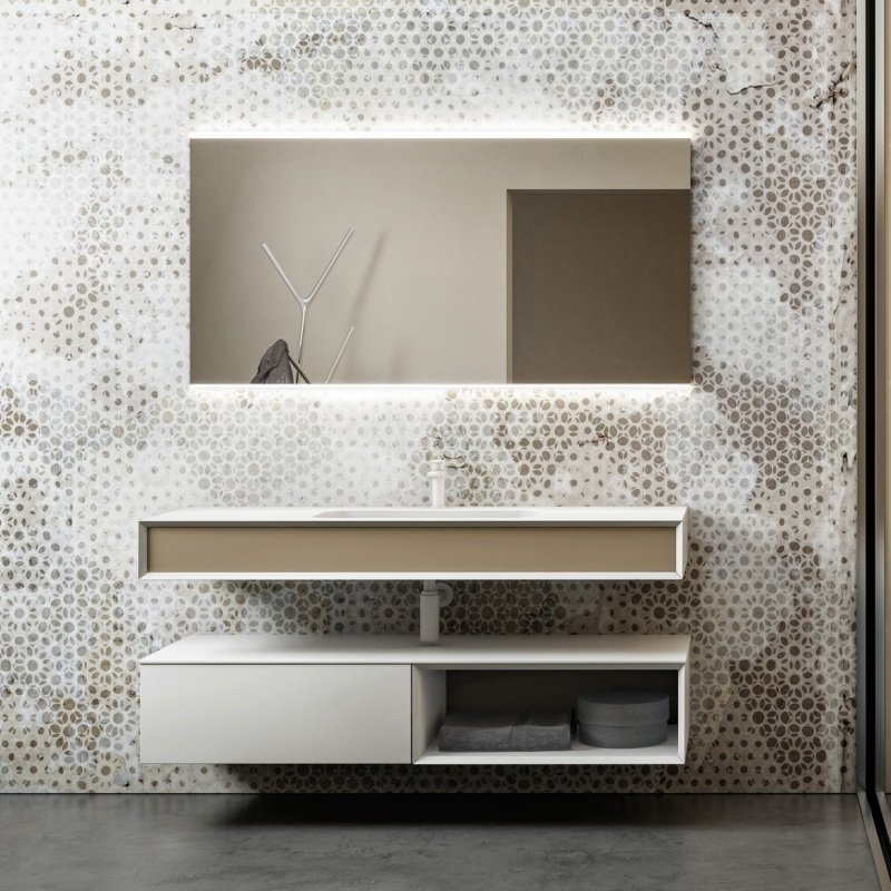 MENSOLONI BASE SUSPENDIDA CON CAJONERA MUEBLE DE PARED Y ESPEJO Propuesta 733