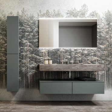 • PREMI E APRI PORTALAVABO SUSPENDIDO 1 CAJÓN CON MÓDULO PARED ESPEJO