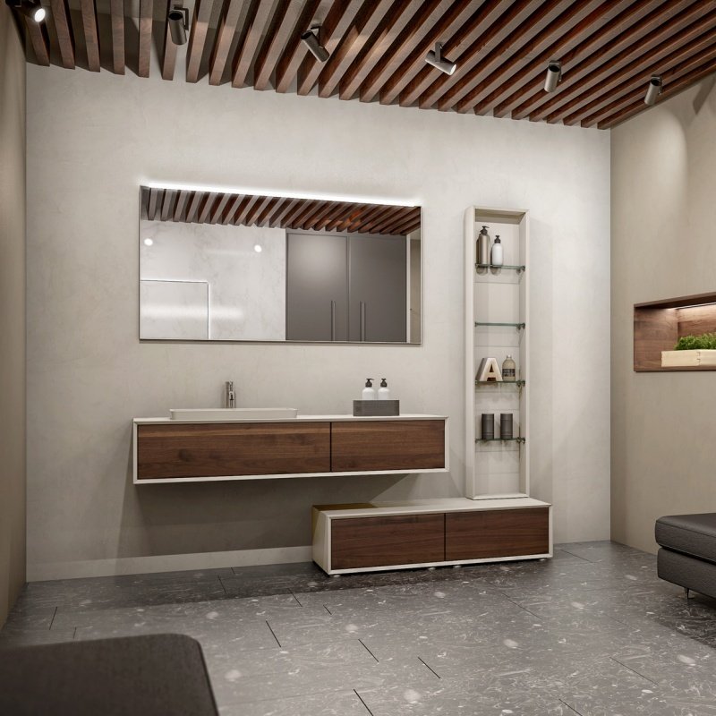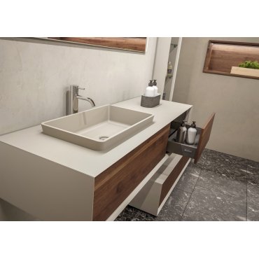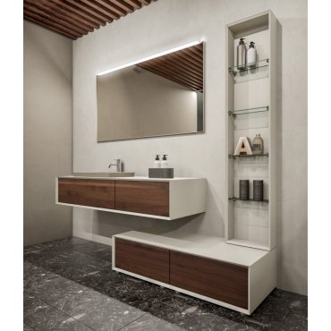 Massello es una colección con un material de indudable valor y durabilidad que ofrece composiciones para el baño con el auténtico color de la madera. La naturalidad y suavidad de sus acabados hacen que cada elemento sea único y original.
