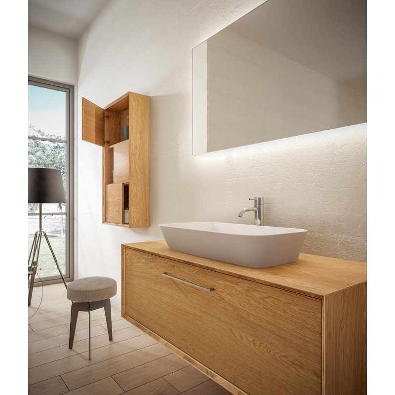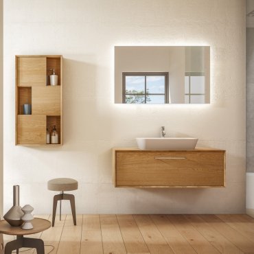 Massello es una colección con un material de indudable valor y durabilidad que ofrece composiciones para el baño con el auténtico color de la madera. La naturalidad y suavidad de sus acabados hacen que cada elemento sea único y original.