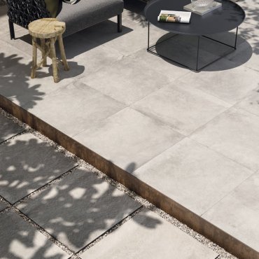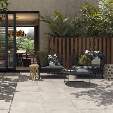Con su acabado abujardado también es posible pavimentar zonas exteriores.
