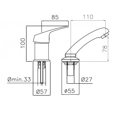 TREEMME CAÑO PARA LAVABO DE ENCIMERA 22 MM ACERO 260
