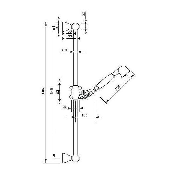 Barra deslizante de latón retro compuesta por: rampa con barra de latón, teleducha de latón retro de un chorro, manguera flexible de 150 cm. Sin jabonera.