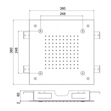 Alcachofa de ducha mural cuadrada de acero inoxidable, anticalcárea, con doble chorro de lluvia y nebulizador Dimensiones: 380x380 mm, con kit de fijación para instalación en el techo.