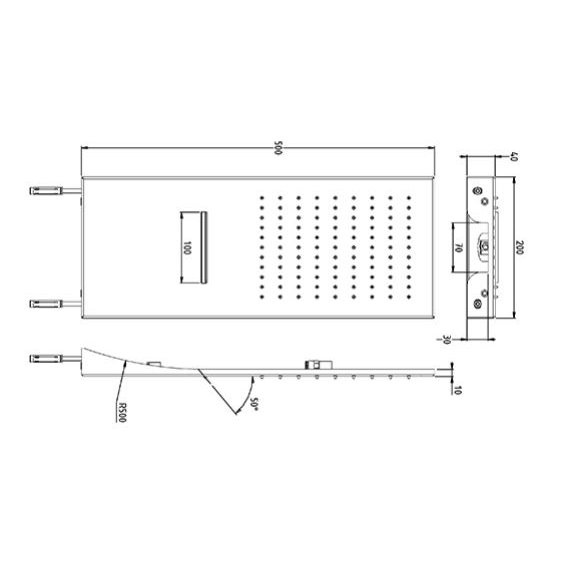 GABOLI FRATELLI WELLNESS ROCIADOR RECTANGULAR DE ACERO DE 2 CHORROS DE PARED