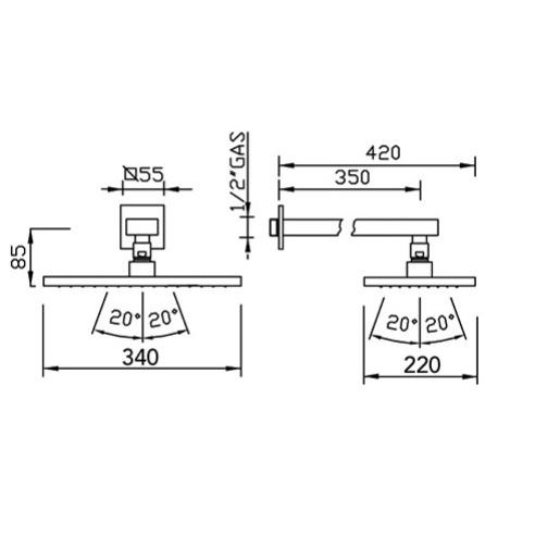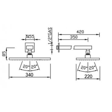 GABOLI FRATELLI WELLNESS ROCIADOR RECTANGULAR DE ACERO CON BRAZO DE DUCHA