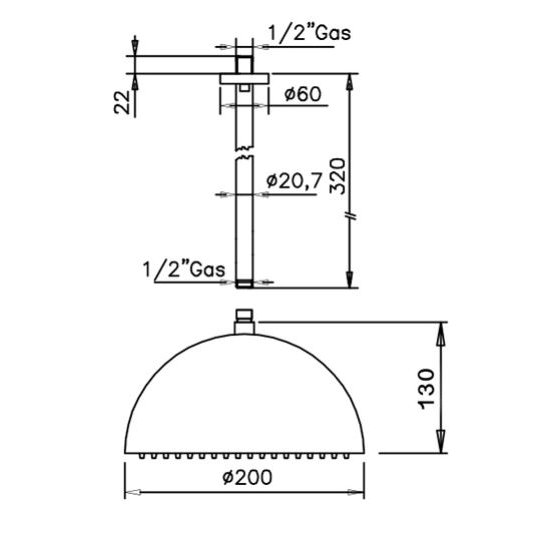 GABOLI FRATELLI WELLNESS ROCIADOR DE ACERO Ø 200 MM CON BRAZO DE TECHO