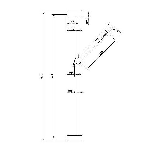 Barandilla redonda minimalista de latón compuesta por: Rampa con barra de pared redonda de latón Ducha anticalcárea mínima en abs, de un solo chorro Tubo flexible de latón con doble engarce cm 150 Sin jabonera.