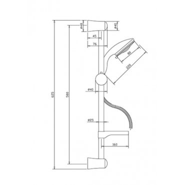 Barra de deslizamiento de latón compuesta por: Rampa con barra de latón Ducha de mano de abs anticalcárea, 3 chorros Manguera de latón de doble abrazadera cm 150 Jabonera