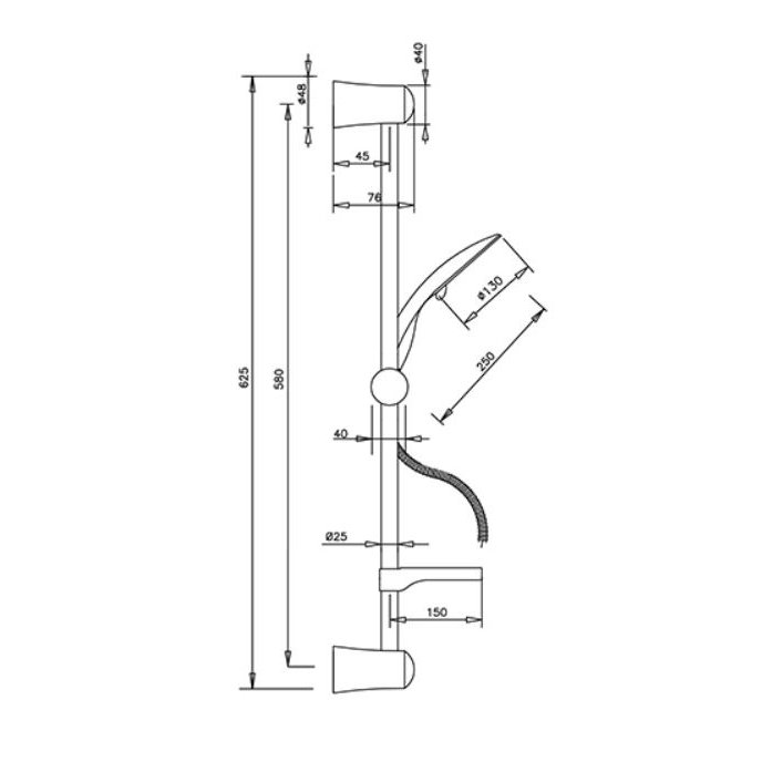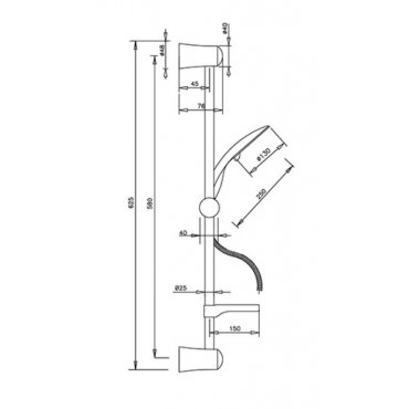 Barandilla deslizante "ECO" compuesta por: Barra de latón y soportes de abs Ducha manual de abs anticalcárea, tres chorros Manguera flexible de latón cm 150 Con jabonera.
