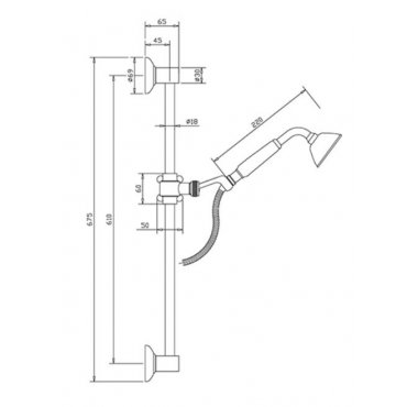 Barandilla deslizante de latón retro, compuesta por: Rampa con barra de latón Ducha manual retro de latón, chorro único Manguera de latón cm 150 Sin jabonera.