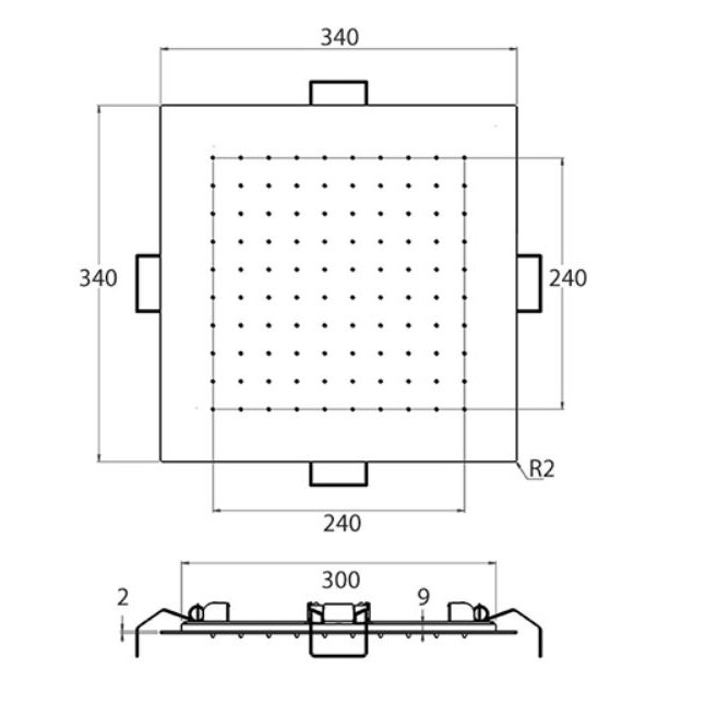 GABOLI FRATELLI WELLNESS ALCACHOFA CUADRADA DE TECHO 34X34CM ACERO INOXIDÁBLE